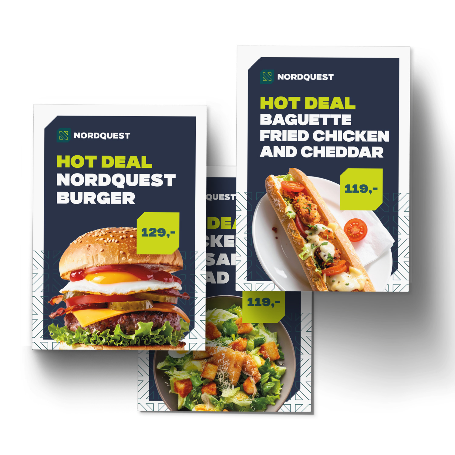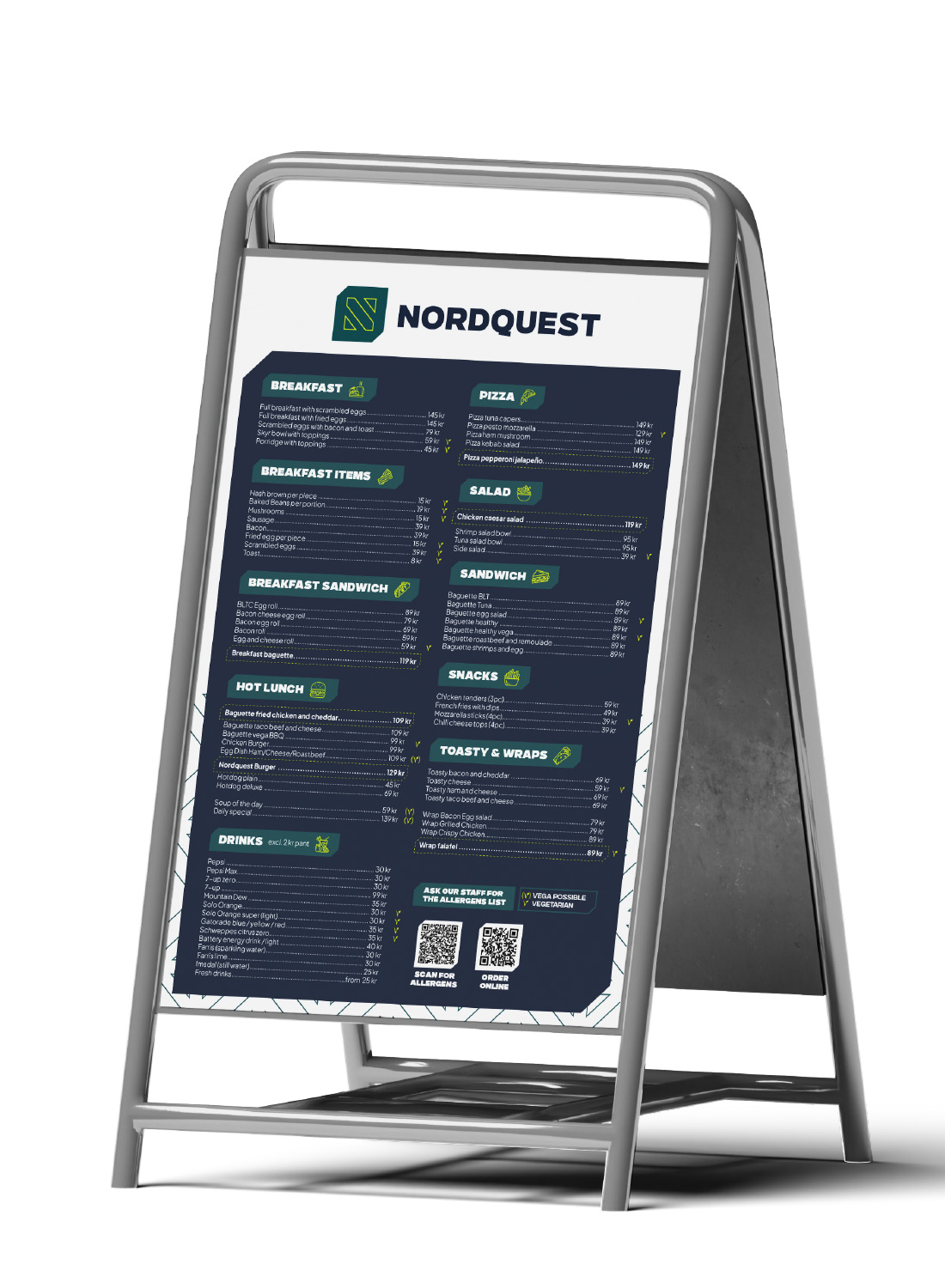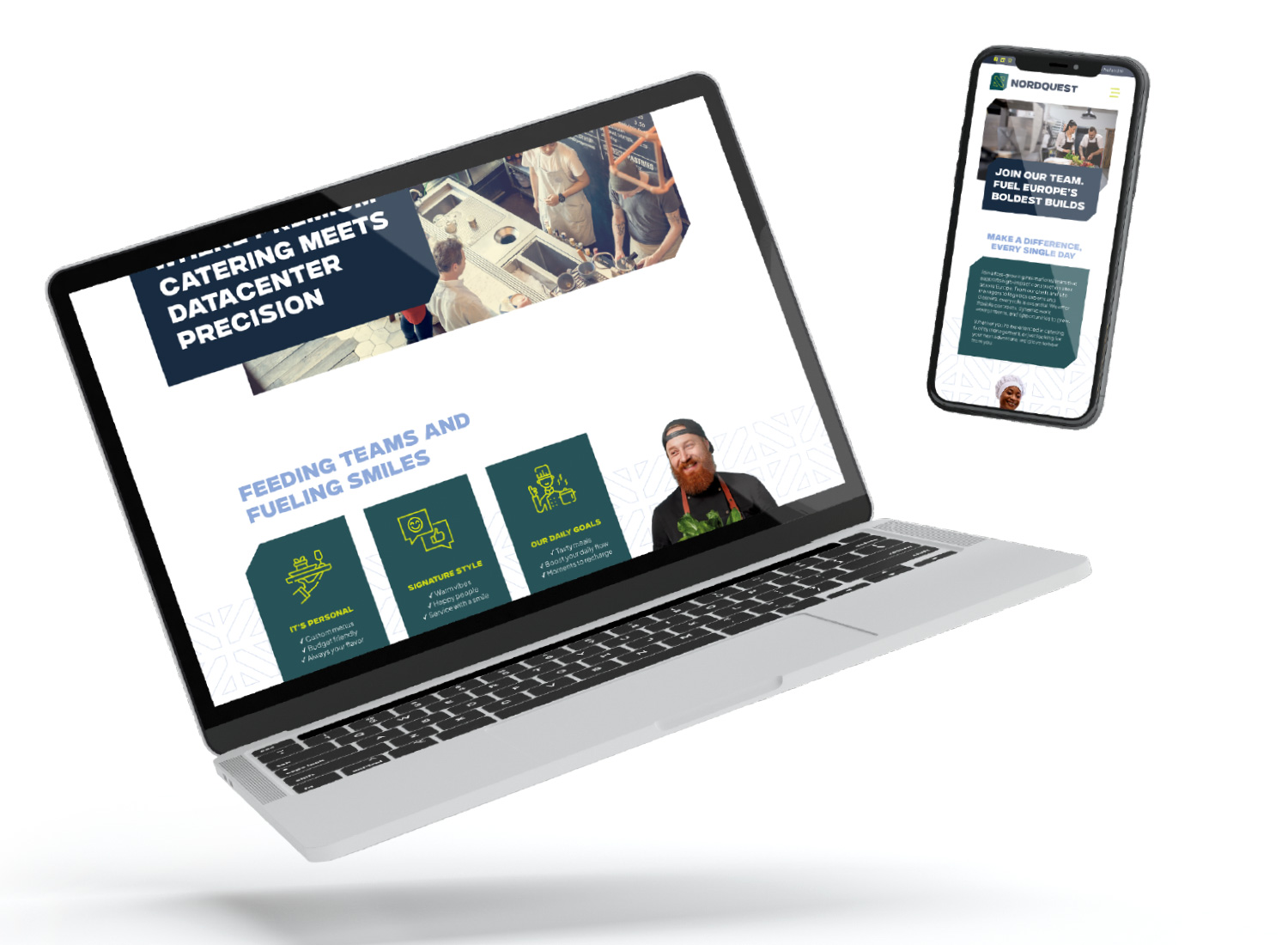 Vanuit de gekozen stijl ontwikkelden we alles door: een nieuwe website, menukaarten, klanttevredenheidskaartjes, signing en nog veel meer. Alles in één krachtige, herkenbare lijn. Zo zorgen we dat Nordquest op elk vlak dezelfde professionele en robuuste uitstraling heeft, zowel online als offline.